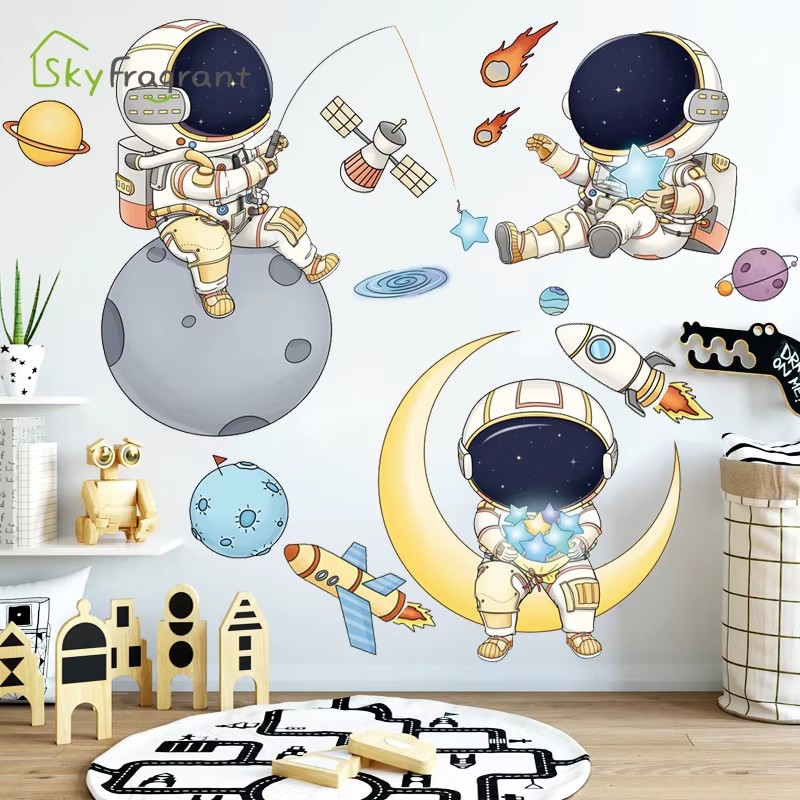 Cartoon Space Astronaut Wall Stickers For Kids Rooms Background Wall Decor