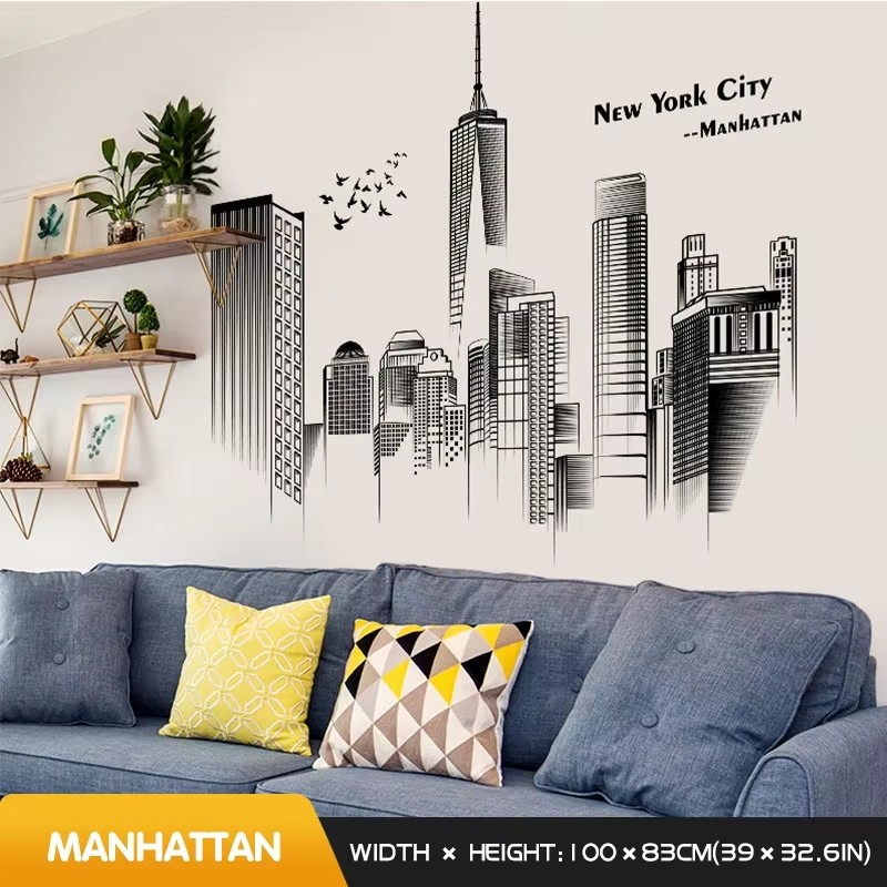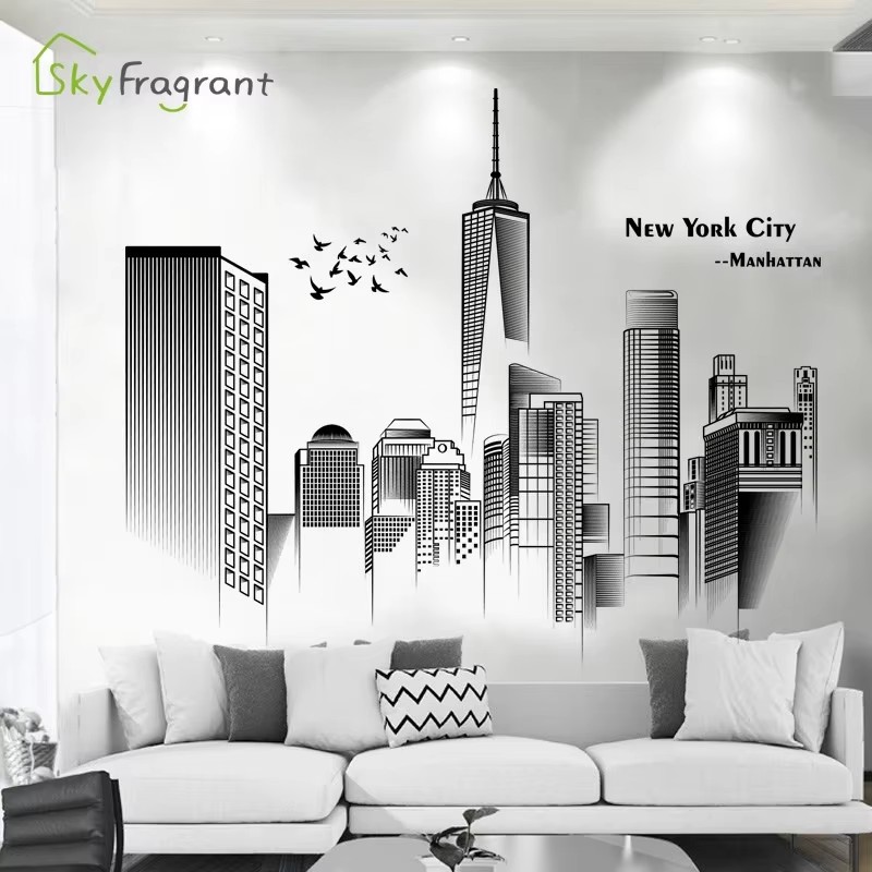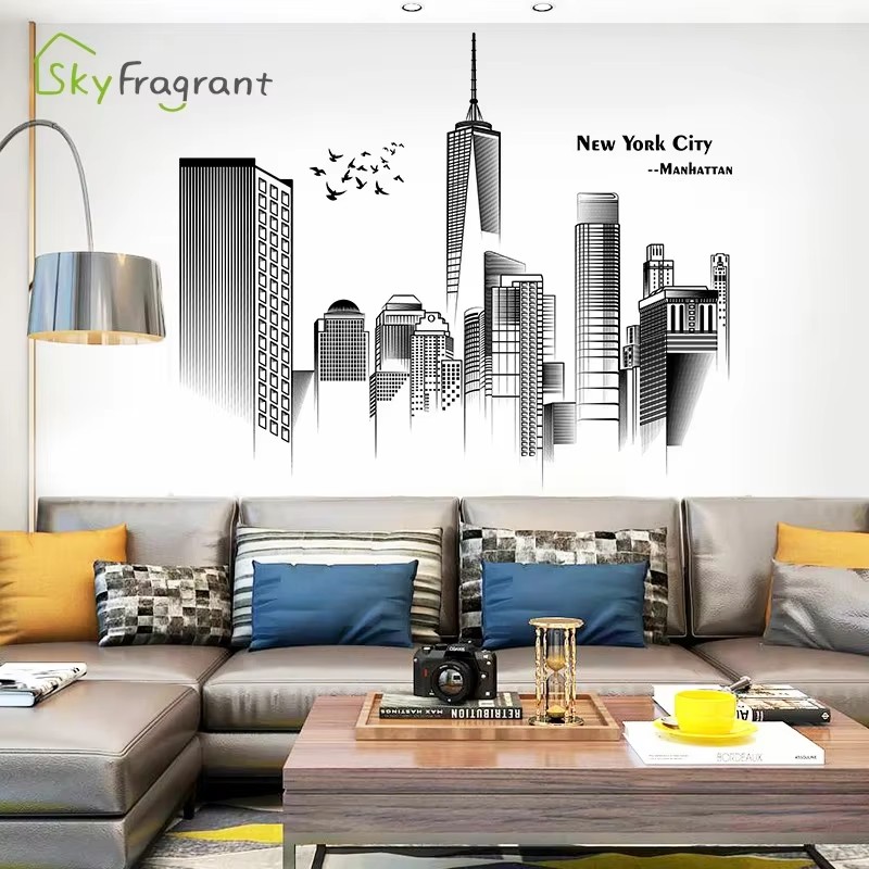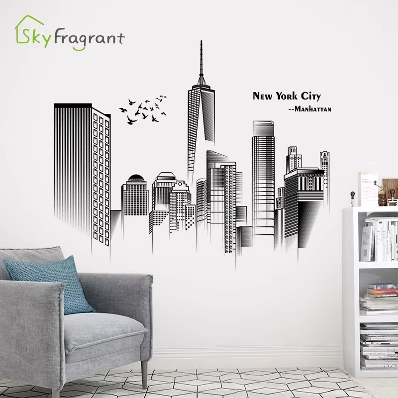 / Creative Manhattan Wall Sticker Bedroom Decor Home Black And White Art Stickers Living Room Background Wall Decor Self-adhesive