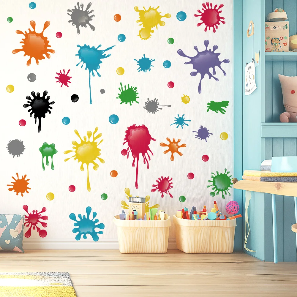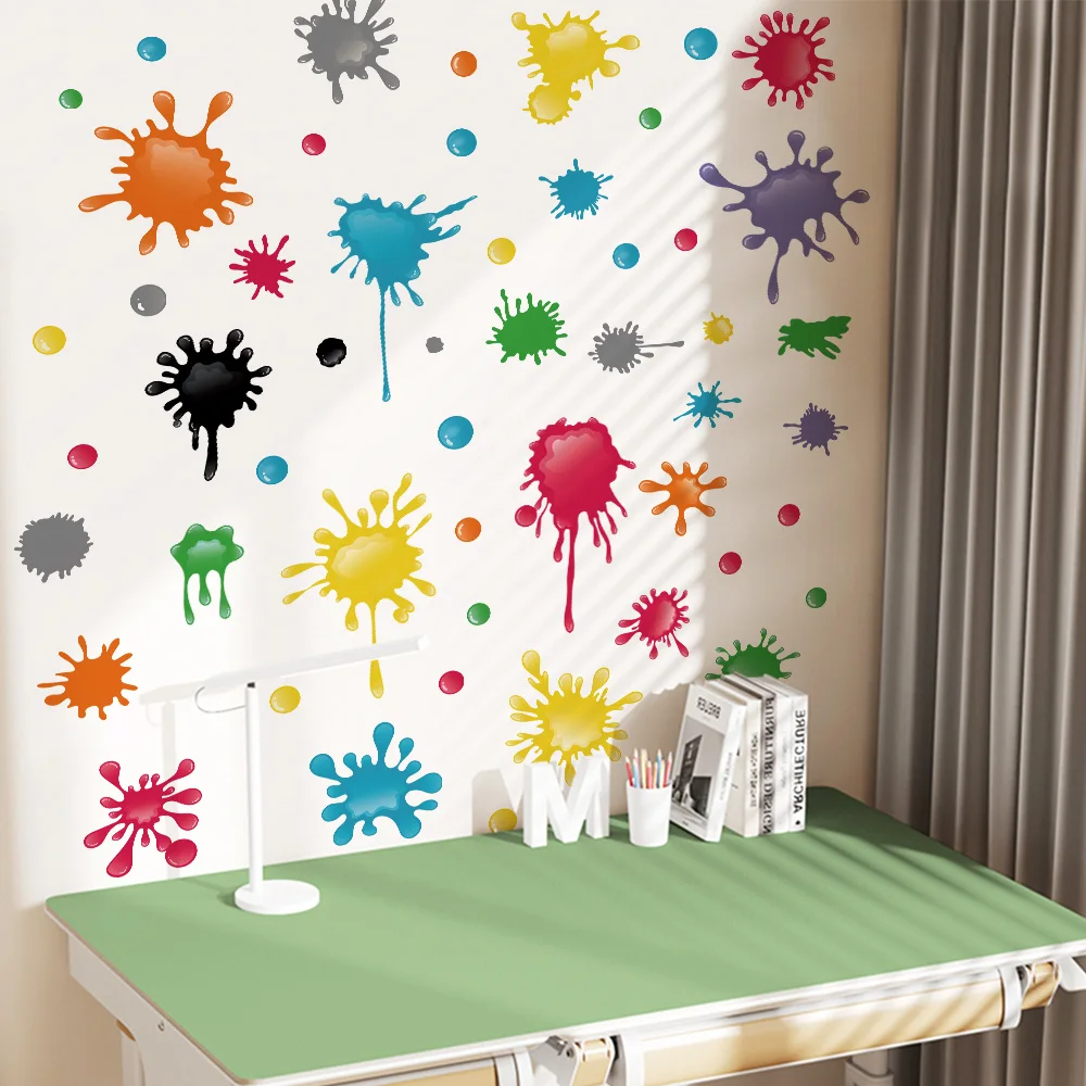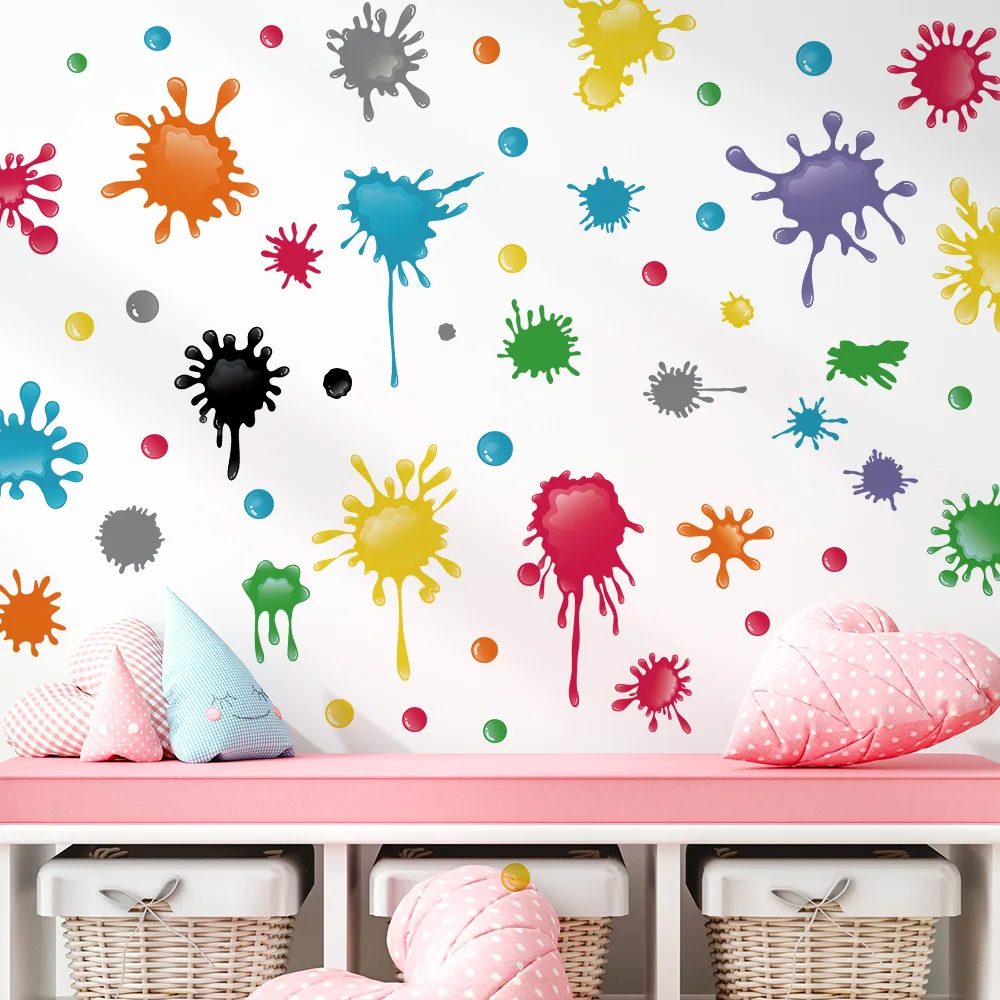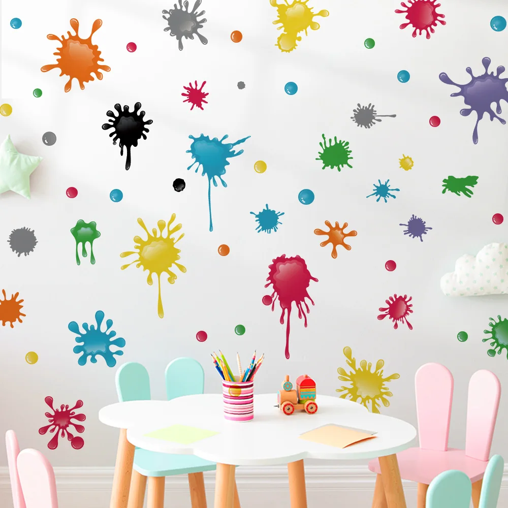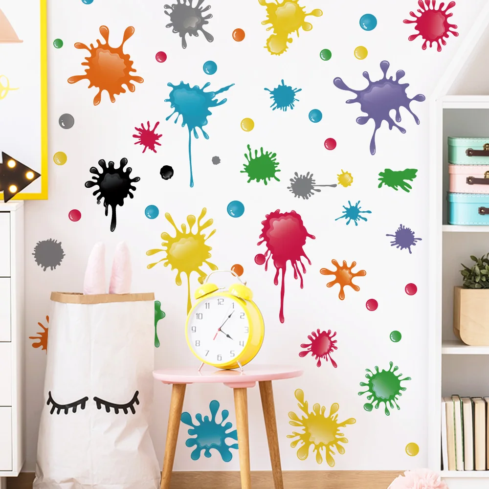 / Creative Watercolor Colorful Wall Stickers For Kids Room Child Bedroom Wardrobe Wall Decor Self-adhesive Sticker Wallpapers