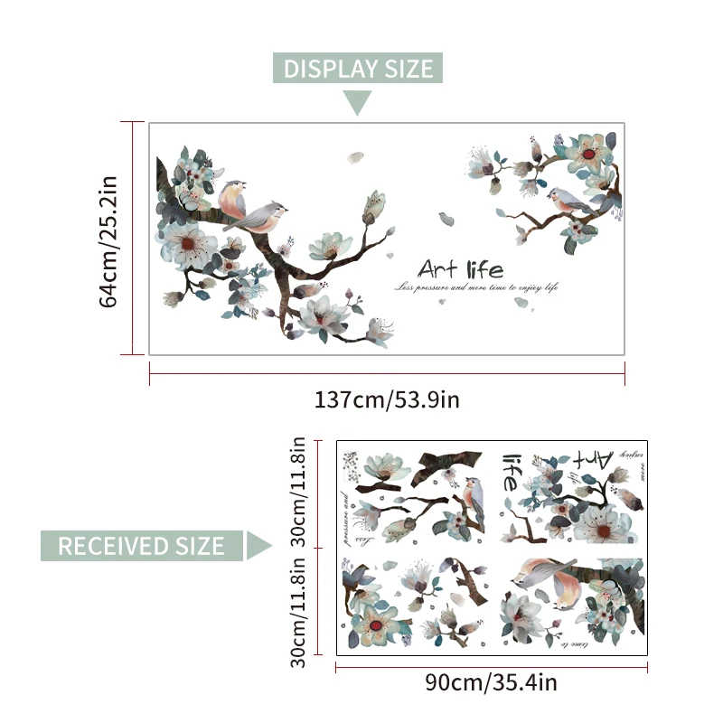 Ink Wash Peach Blossom Wall Stickers For Living Rooms Background Wall Decor