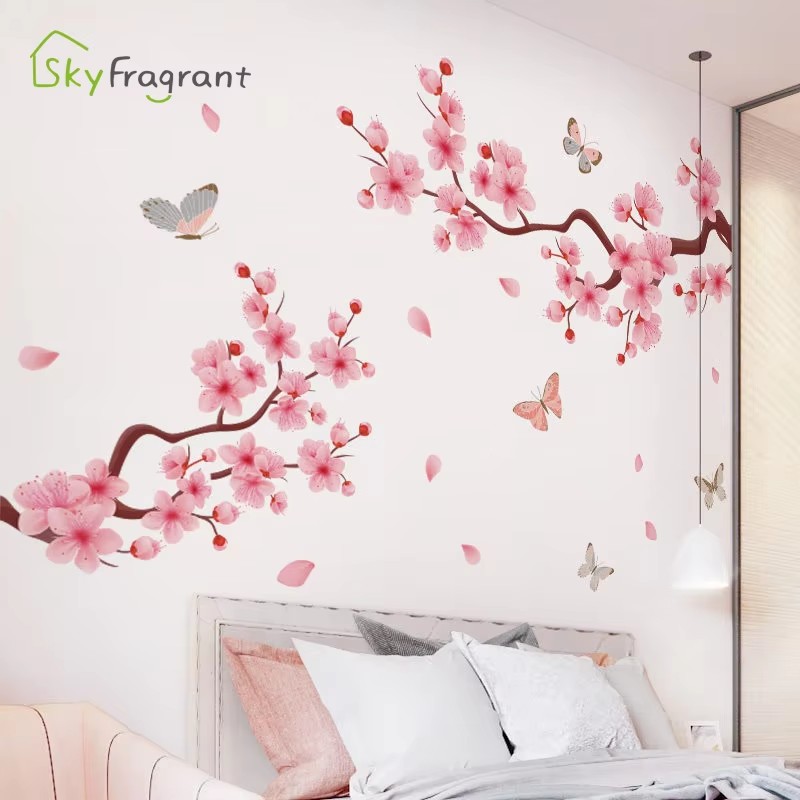 Ink Wash Peach Blossom Wall Stickers For Living Rooms Background Wall Decor