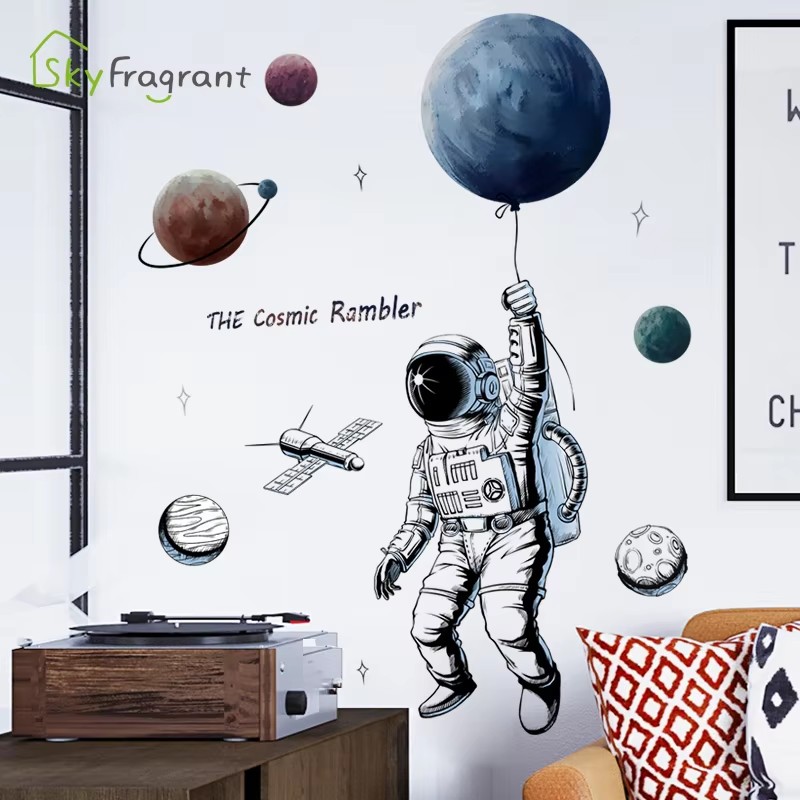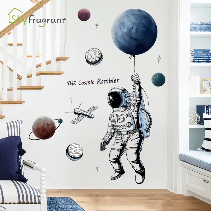Space Theme Astronaut Wall Stickers For Kids Room Background Wall Decor